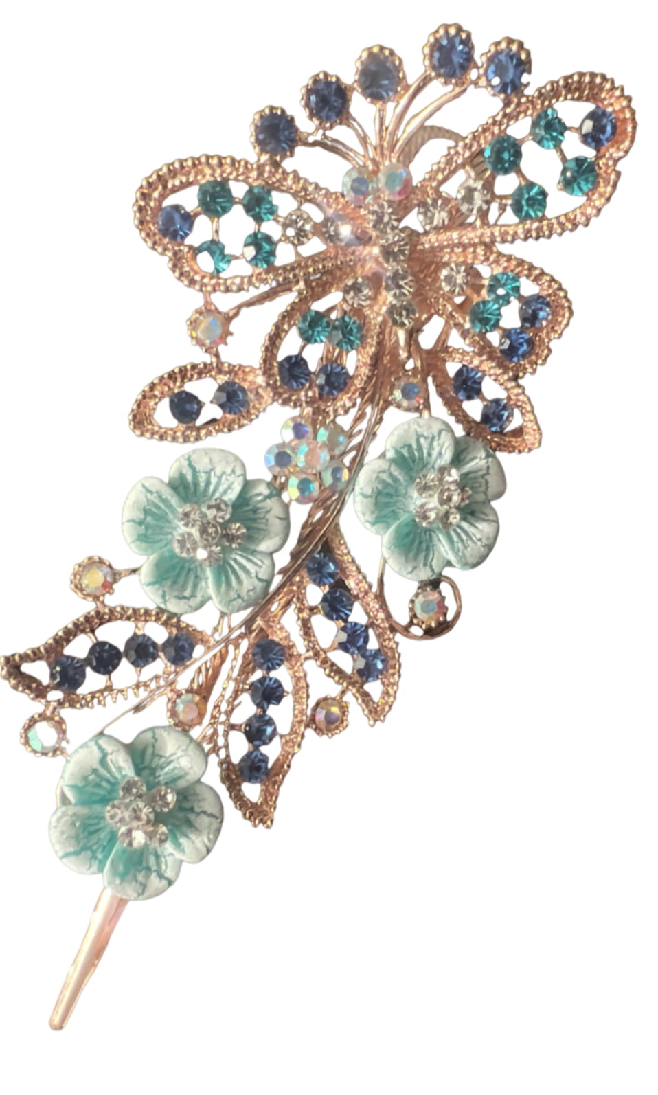 Blue Butterfly &Flowers Hair Pin