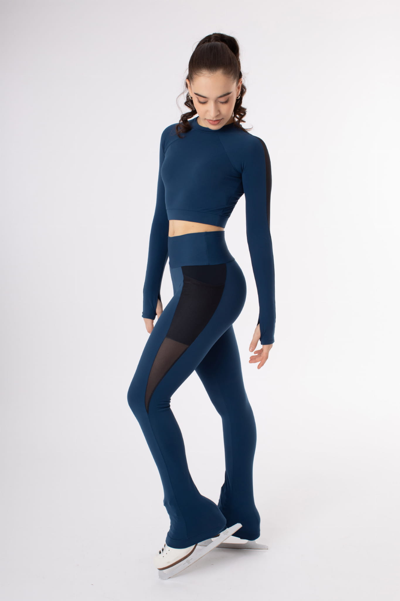 Introducing the Dada Pants, the essential garment for ice skaters looking to combine style and comfort. Designed with a high waist and thin brushed fabric inside, these pants offer warmth and softness with every move. The black mesh on the sides add a modern and elegant touch, while the wide waistband provides a secure and comfortable fit. The side pocket is perfect for carrying small personal items. The wide hem covers the heel and features a silicone band that ensures a perfect grip. Ideal for skaters, the Dada Pants are the perfect choice to stand out on and off the rink.