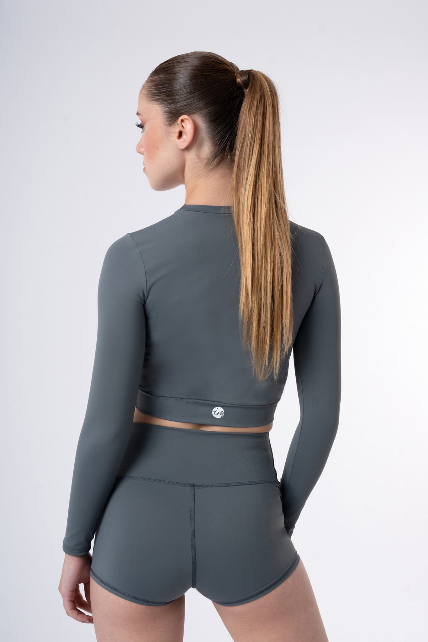Elvira Long-Sleeve Cropped Top Intermezzo. The Elvira top blends style and comfort with a flattering design. Made from Meryl, a breathable, stretchy, and ultra-light technical fabric, it provides maximum freedom of movement—perfect for training. Its front knot accentuates the silhouette, while the white logo on the back adds a subtle touch.