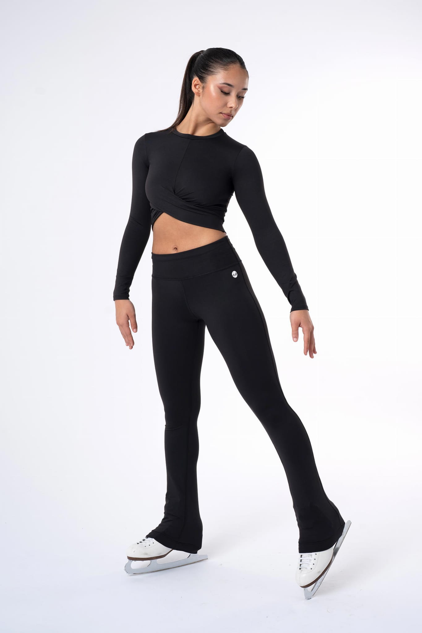 Elvira Long-Sleeve Cropped Top Intermezzo. The Elvira top blends style and comfort with a flattering design. Made from Meryl, a breathable, stretchy, and ultra-light technical fabric, it provides maximum freedom of movement—perfect for training. Its front knot accentuates the silhouette, while the white logo on the back adds a subtle touch.