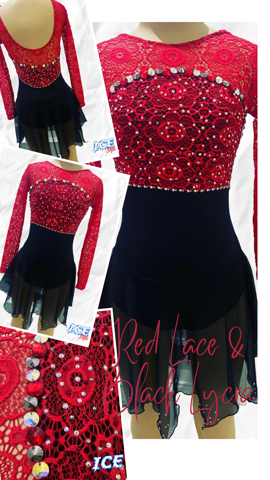 Red lace & black lycra dress 10-12