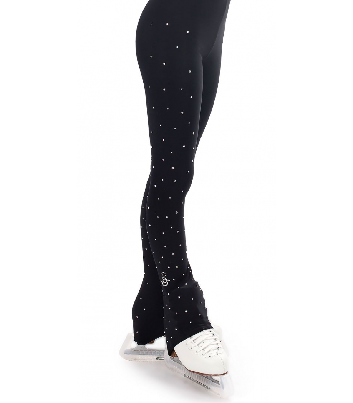 These slim-fit leggings have a skate-cover on the base and a soft belt around the waist, being designed for ice skating and roller skating. They are made of a high-thermal, quality fabric composed of hollow microfilaments to favour an exceptional insulation of warmth when in contact with the body whilst also having a high degree of breathability and body thermoregulation, excellent moisture control and an antibacterial capacity to ensure sporting performance at the highest levels. All this is combined with the detail of the crystals scattered on the leg to give the wearer a sparkling look to show off in the rink.