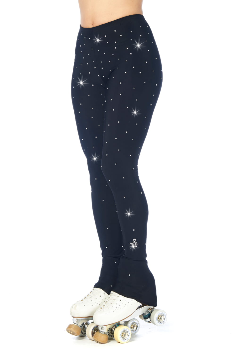 Leggings in thermal fabric containing hollow fibres,  with heel cover and crystals