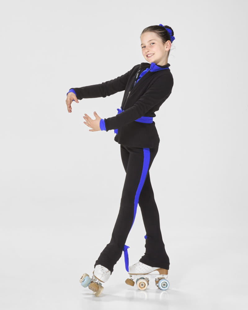 Leggings made of warm thermal fabric with an interior featuring a soft faux fur effect, distinguished by its extraordinary softness that gently wraps the body in a comfortable and cozy embrace. Its smooth, velvety surface provides a pure tactile pleasure, like a caress on the skin. Equipped with a high, supportive waistband that gently hugs the waist, offering impeccable support to the abdominal area. Designed to stay in place, it prevents the leggings from slipping or shifting during every movement. An embrace that supports you, allowing you to focus solely on your training, without distractions. The side insert in soft, coloured microfiber adds a touch of vibrancy, while the delicate side bow imparts a refined and charming allure. A detail for those who love to stand out with elegance during their skating workouts and beyond the rink.