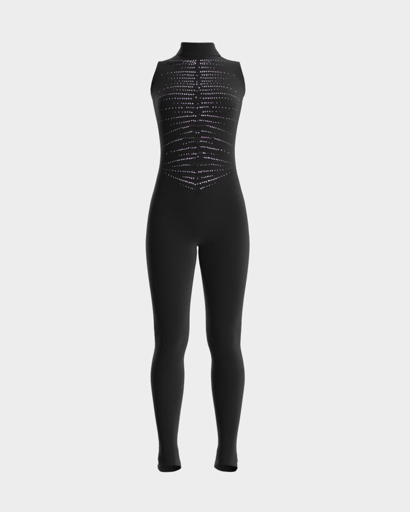 A full-body skating suit made from soft and luxurious velvet, extremely comfortable and form-fitting, characterized by a smooth and silky texture that makes it particularly soft and pleasant to the touch. The way the light reflects off the fabric creates a shimmering, refined effect. The design features ruching at the sides, adding a dynamic and sophisticated look to the fabric. The back closure with buttons at the center of the neck allows for easy wear, creating an elegant teardrop opening on the back. It also includes heel covers at the bottom for added comfort and to accentuate the line of the leg during training or competition. The suit features a luminous effect, thanks to a precious pattern of Aurora Borealis crystals in various sizes, arranged in rows on the bust and gradually fading along the sides. A meticulously designed piece with attention to detail, perfect for those wishing to showcase their sophisticated side.