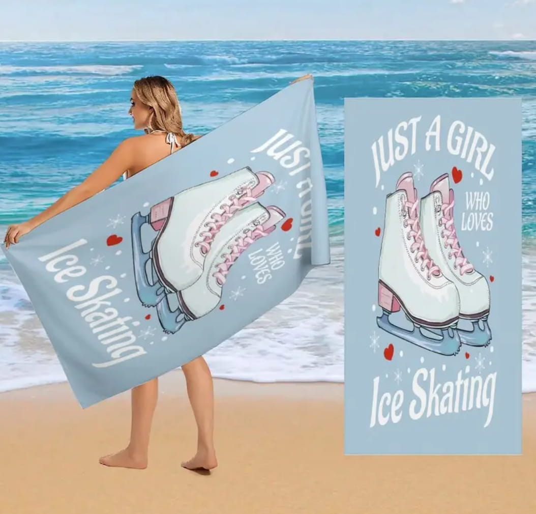 Ręcznik plażowy z nadrukiem łyżwy.