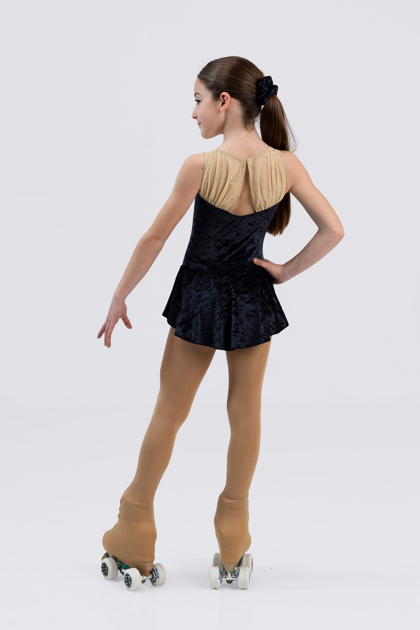 Sukienka uszyta z elastycznego aksamitu i siateczki z brokatem.