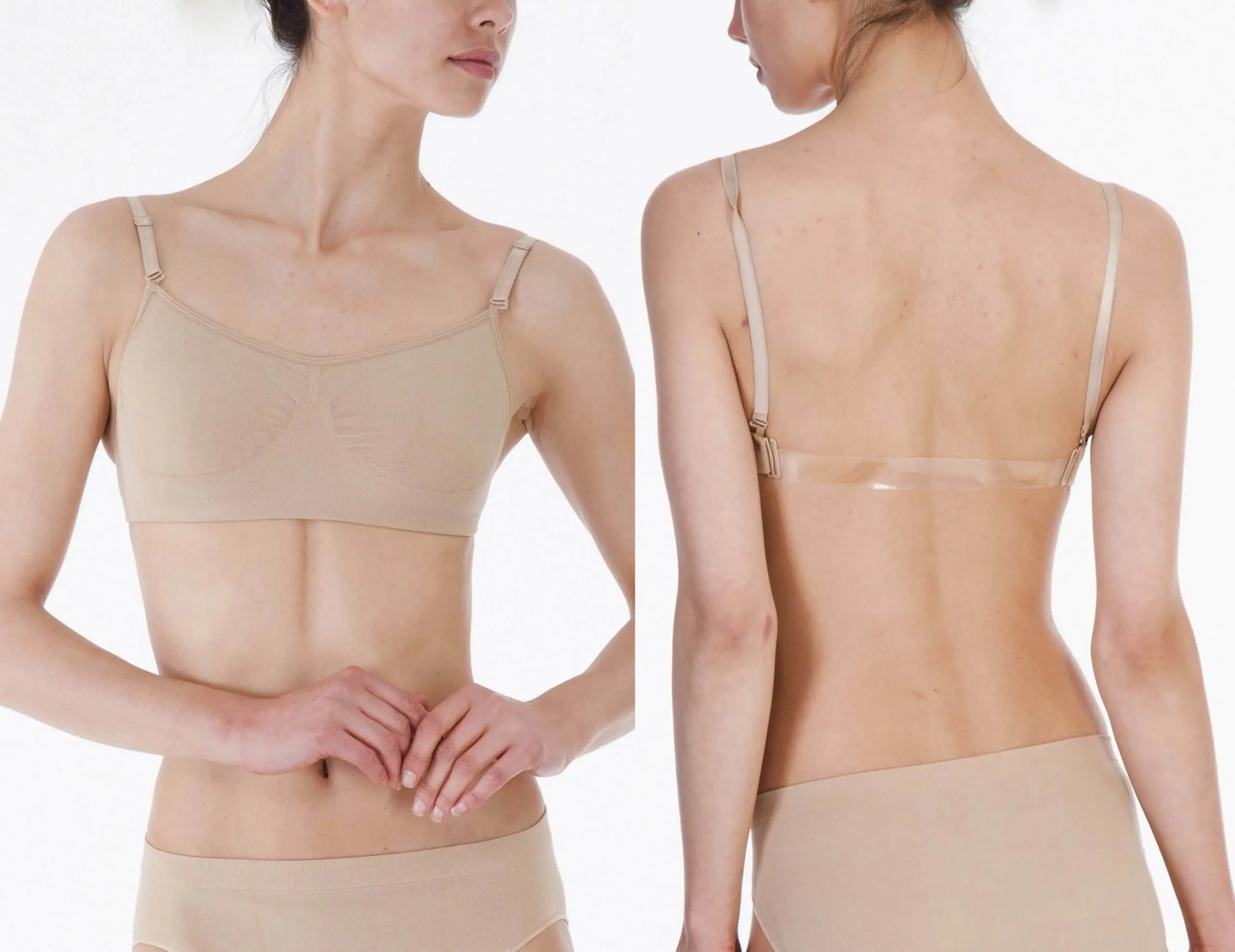 Miękki i przyjemny w dotyku biustonosz, dający duży komfort zarówno podczas ćwiczeń, jak i w czasie występów. W komplecie wyposażony jest w zamienne przeźroczyste zapięcia, dzięki którym jest praktycznie niewidoczny.