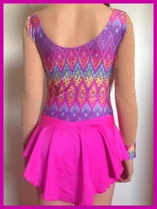 Sukienka uszyta z kolorowej lycry i elastycznej siateczki. Zdobiona kryształkami.