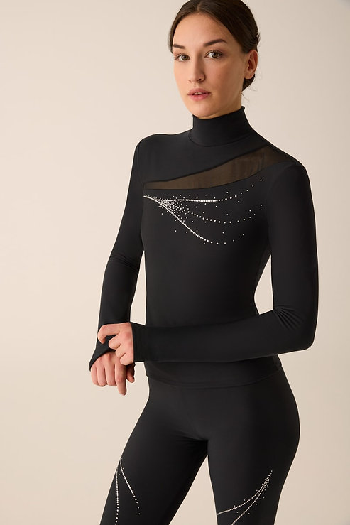 Ocieplana bluzka Primavera z polarkiem od wewnątrz. Zdobiona srebrną hologramową aplikacją i wstawką z elastycznej siateczki.