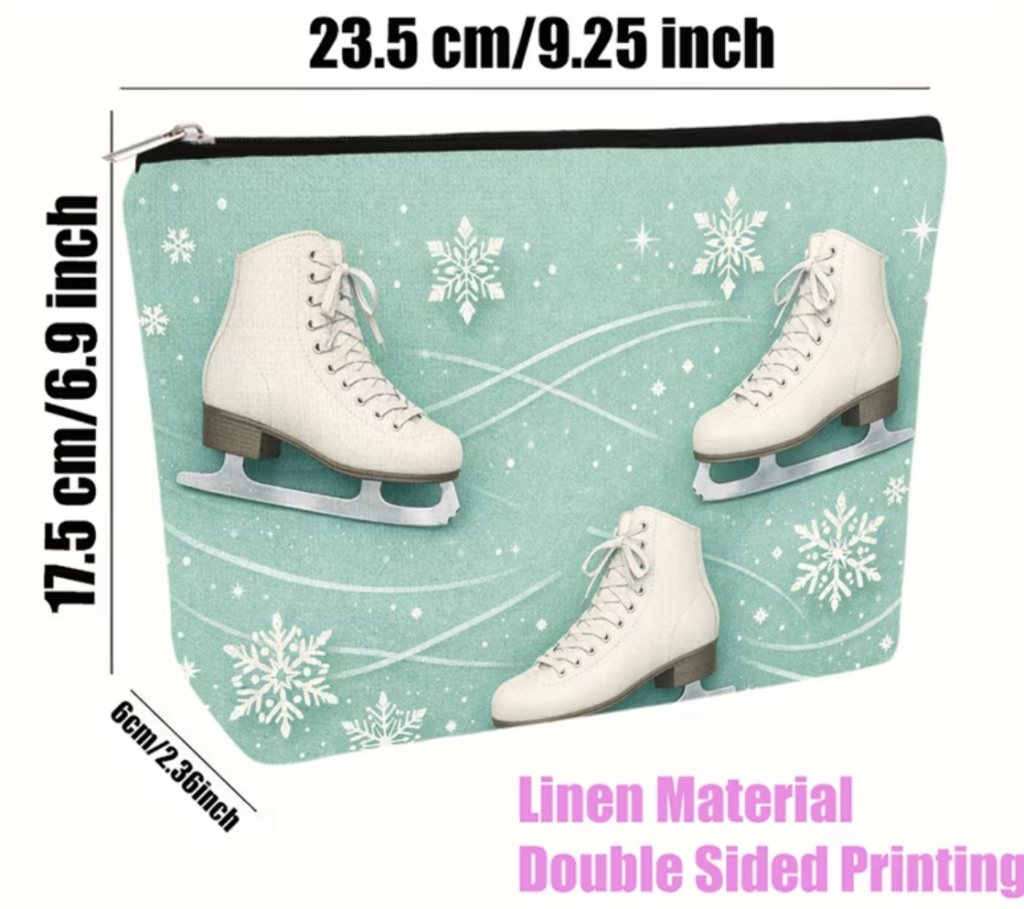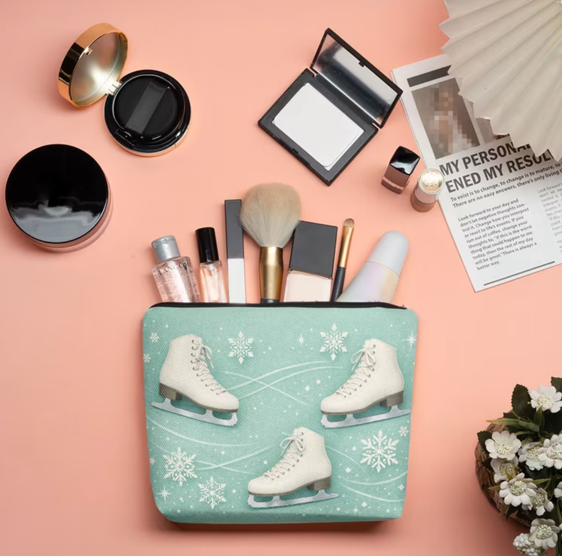 Turquise Cosmetic Bag with White Skates